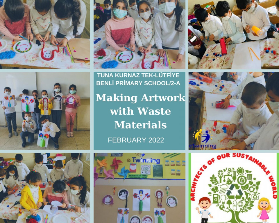 Okulumuz 2/A sınıfı öğrencileri etwinning proje çalışmaları kapsamında kağıt,plastik,şişe kapağı gibi atık malzemeler kullanarak sanat çalışmaları oluşturdular.Öğrencilerimiz bu çalışmalarını yaparken etraftan topladıkları atık malzemeleri boyayarak,artan renkli kağıtlarla kaplayarak okuldaki diğer öğrencilerimize de örnek olacak sanatsal etkinlikler de bulundular.Çalışmalarında öğrencilerimize ve öğretmenleri Tuna KURNAZ TEK' e başarılar dileriz.