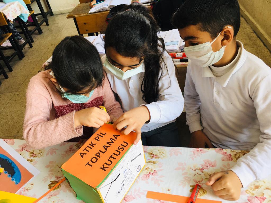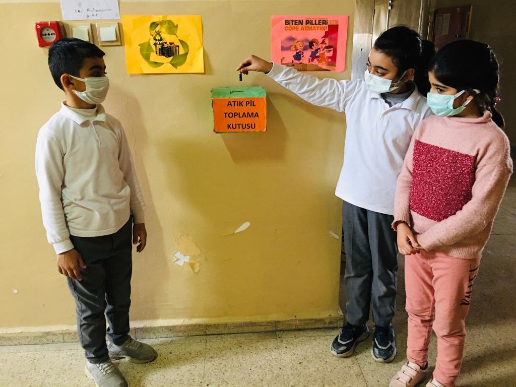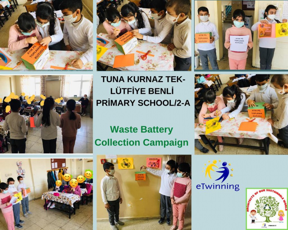 " 2/A sınıfı öğrencileri olarak etwinning projemiz kapsamında Okulumuzda çeşitli duyurular ve afişler yayınlayarak atık pilleri toplama kampanyası başlatıyoruz.Atık pilleri çevreye atmıyoruz atık pil kutularına atıyoruz" Bitmiş pilleri evdeki ve sokaktaki çöp kutularına atmak son derece zararlıdır. Pil atıkları için özel olarak üretilmiş çöp kutuları kullanılmalıdır. Bizde kendi imkanlarımızla geri dönüşüm amaçlı pil toplama kutusu yaptık.Pilleri buraya bırakarak enerji tasarrufuna katkıda bulunabiliriz" Öğrencilerimize özverili çalışmaları için teşekkür ediyoruz.