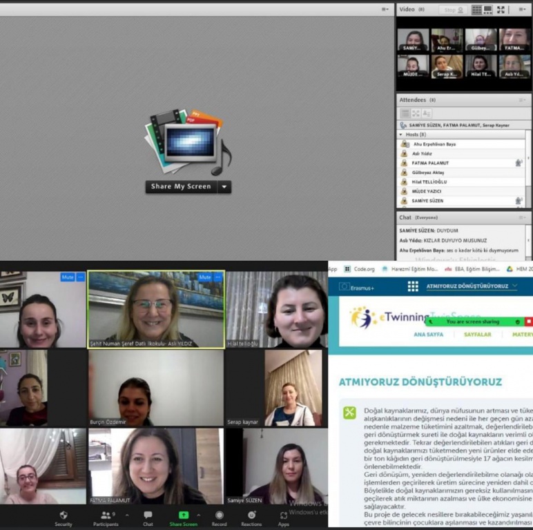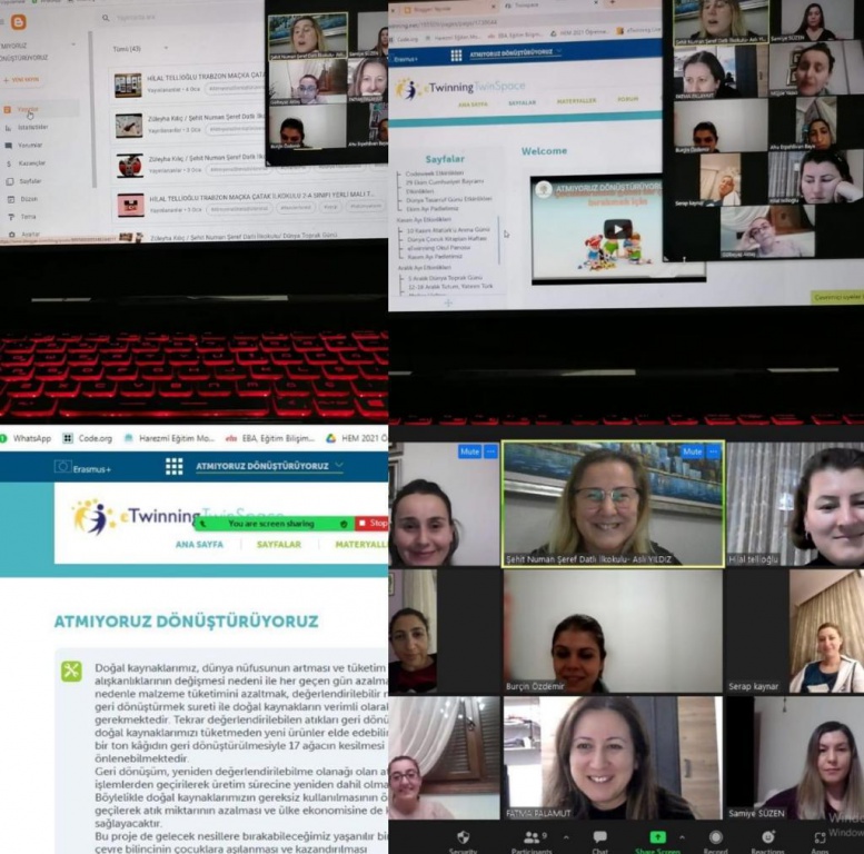 Okulumuz 3/E sınıfı öğretmeni Ahu ERPEHLİVAN BAYA proje ortağı olduğu "Atmıyoruz, Dönüştürüyoruz" projesi için Ocak ayı webinarına katılarak planlama, görev dağılımı ve etkinlik takvimi hakkında ortaklarıyla görüş alış-verişinde bulundu.